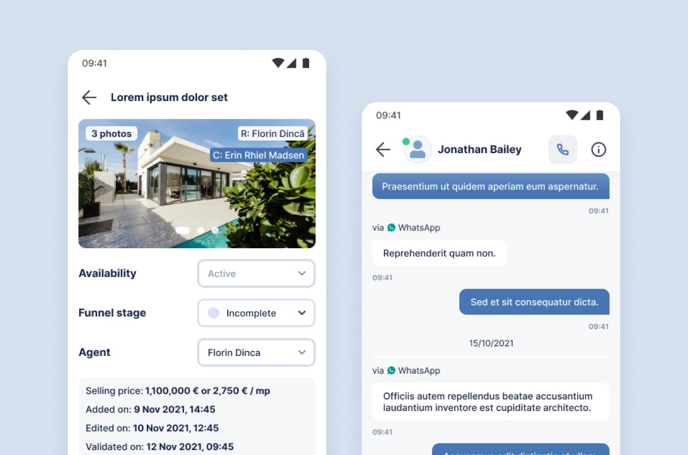 Design Specific pentru Imobiliare: Am integrat funcționalități dedicate, precum statusul unităților locative (Active/Incomplete) și integrarea directă cu WhatsApp în modulul de chat, adaptând CRM-ul la nevoile reale ale pieței.